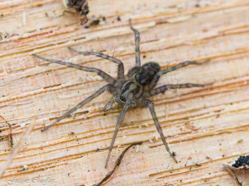 Elle est dotée de huit longues pattes, de couleur sombre et non annelées, lui assurant une course rapide.