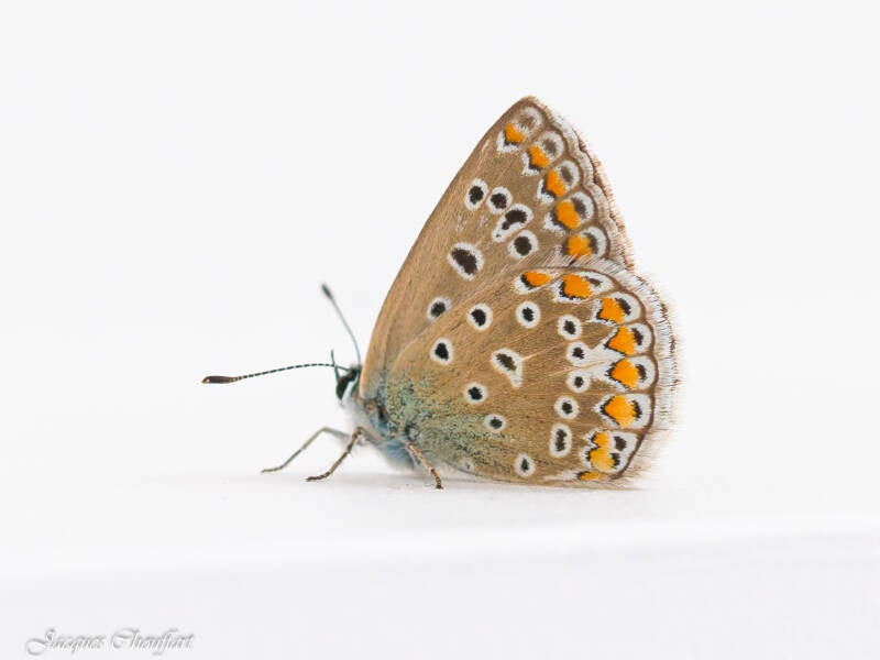 Assez semblable à la femelle de l'Azuré commun , mais un peu plus petit.