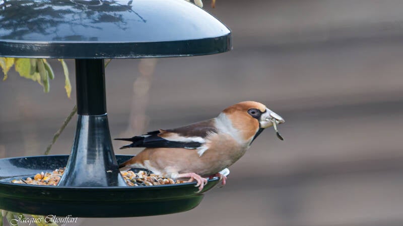 Il n'est plus apparu depuis 2018. En 2024, il y a eu beaucoup d'observations du Grosbec dans les jardins, mais aucune chez nous.