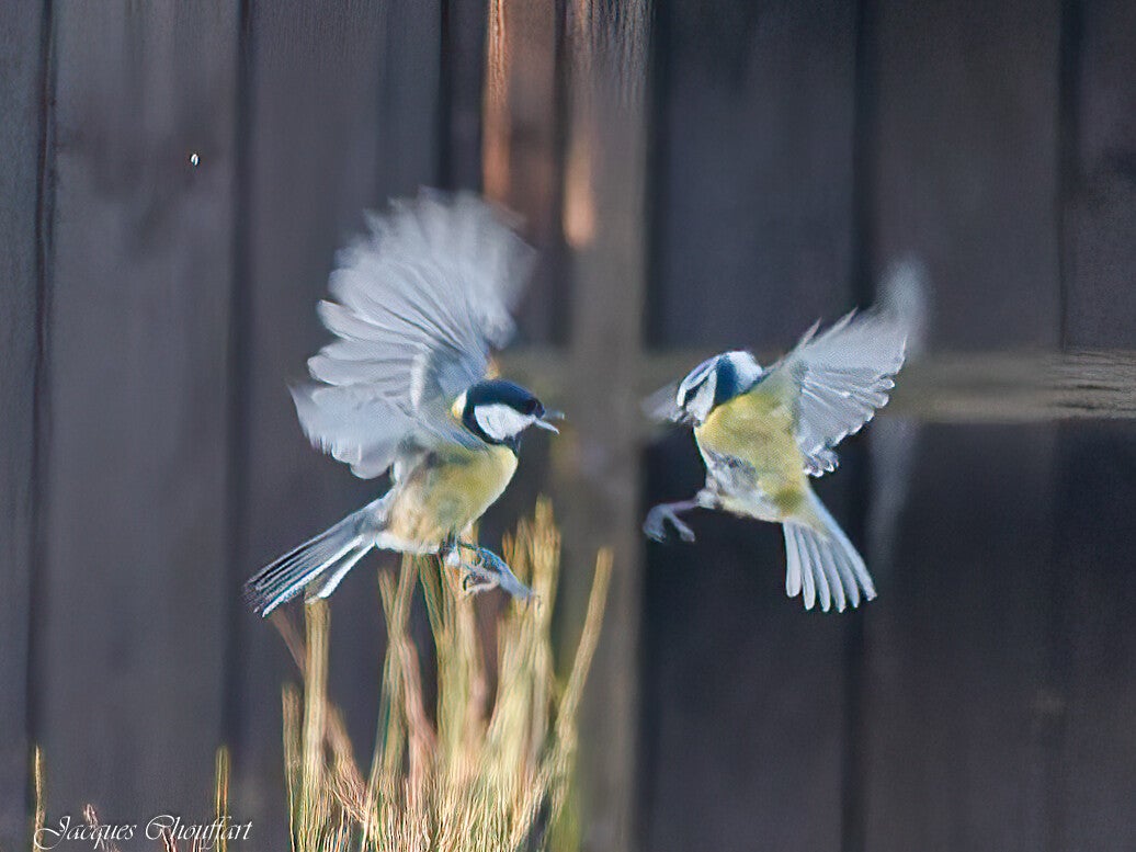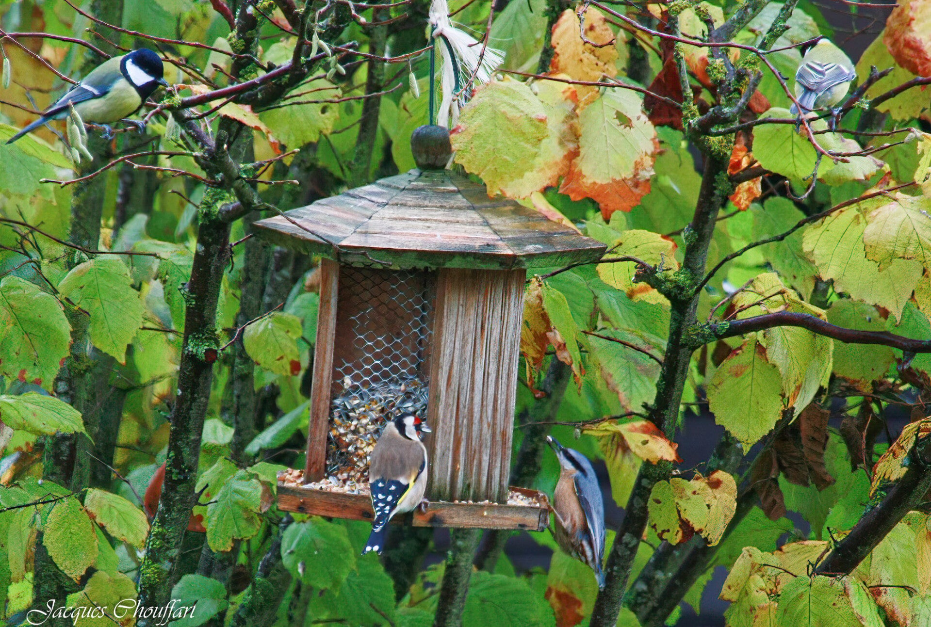 En conflit avec un Chardonneret élégant et des Mésanges charbonnières.
