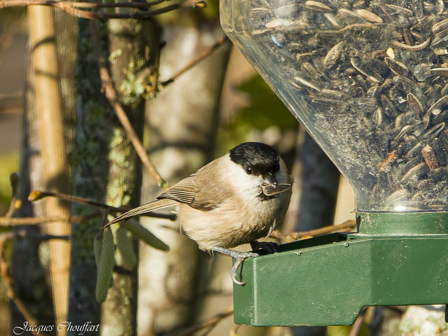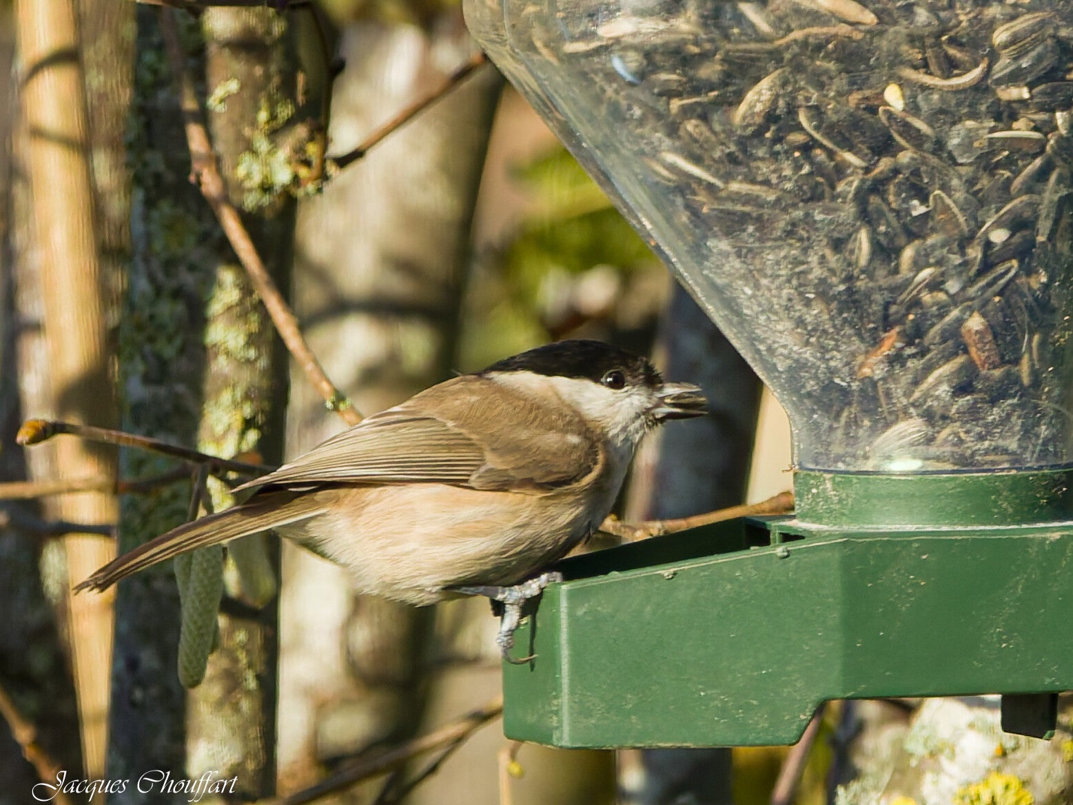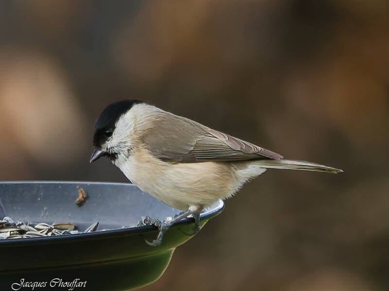 Apparaissent parfois des mésanges à teinte brunâtre et à calotte noire.
