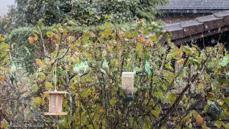 A l'époque, nous mettions encore des boules de graisse avec filet, abandonnées depuis pour la sécurité des oiseaux.