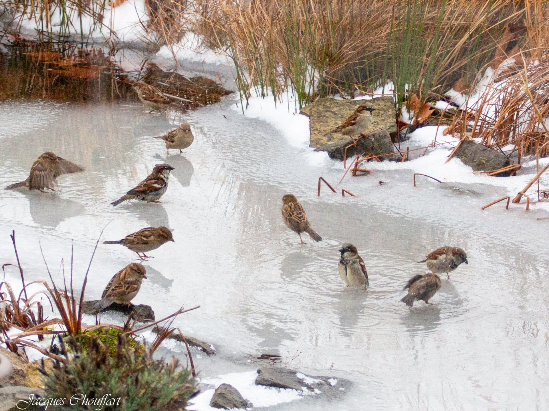 Il faut savoir que les moineaux arrivent en bande d'un coup, mangent, puis repartent aussi vite se cacher dans les haies.