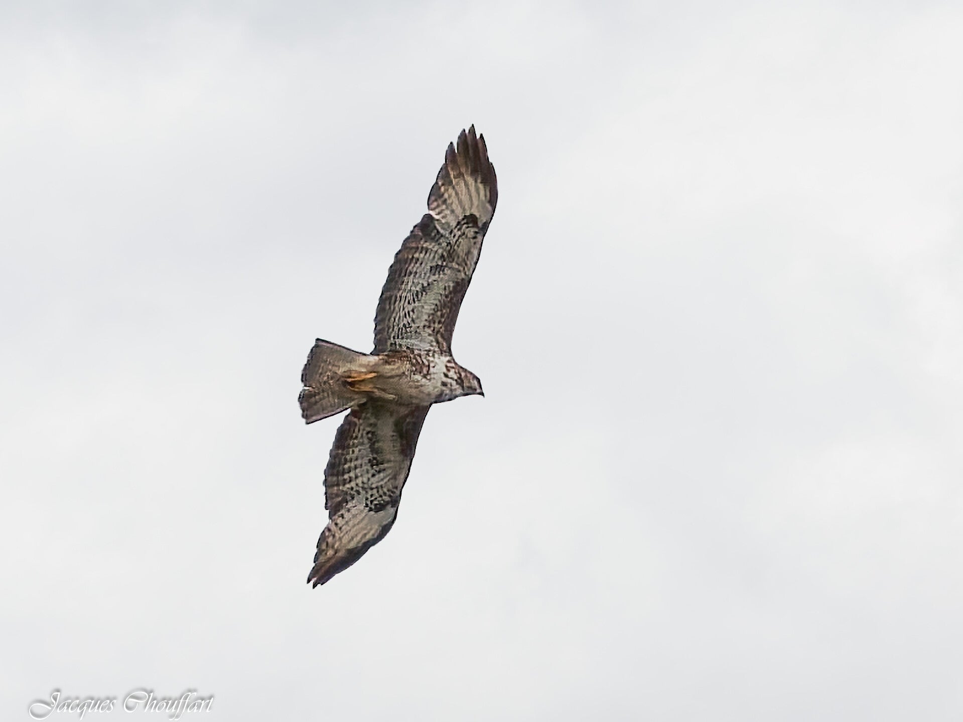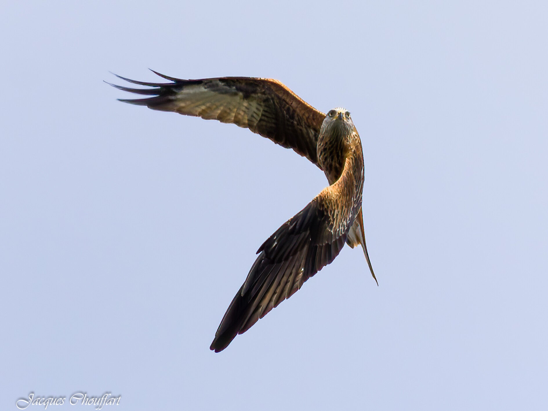 aigle. II se reconnaît à ses ailes coudées et à un dessous blanc tranchant fortement avec le