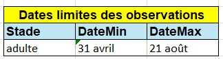 Les valeurs indiquées sont des estimations vu leur nombre.