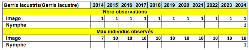 Le maximum des individus imago observés est une estimation vu leur nombre assez important. Ils sont présents de mars à septembre.